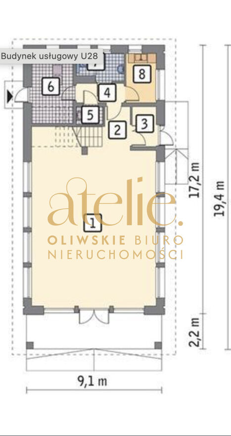 pomieszczenie usługowe – 81,86 m² (pow. całkowita 85,97 m²)