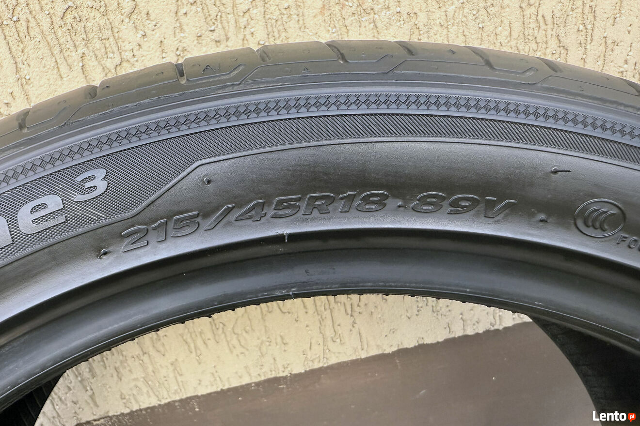 Sprzedam komplet letnich opon marki Hankook model Ventus Prime 3 rozm. 215/45 R18 89 V FR.Opony z 2024r., są w idealnym stanie, przejechałem na nich ok 5 tys km.