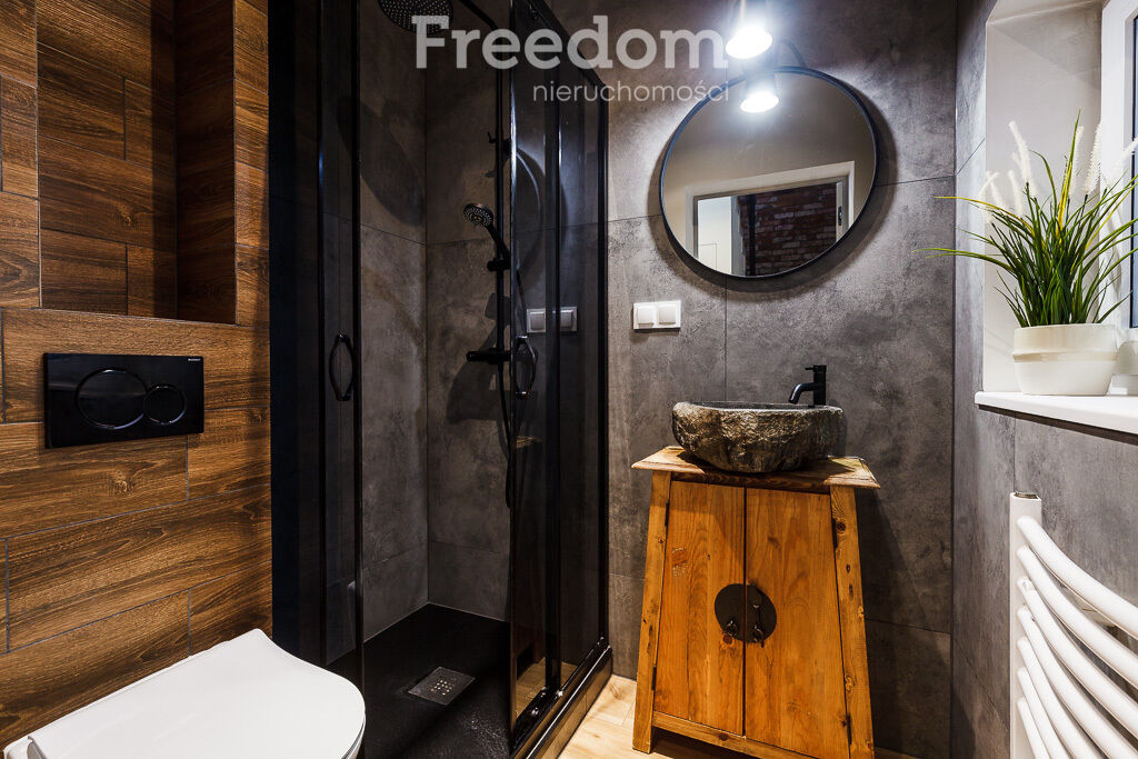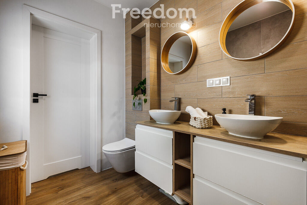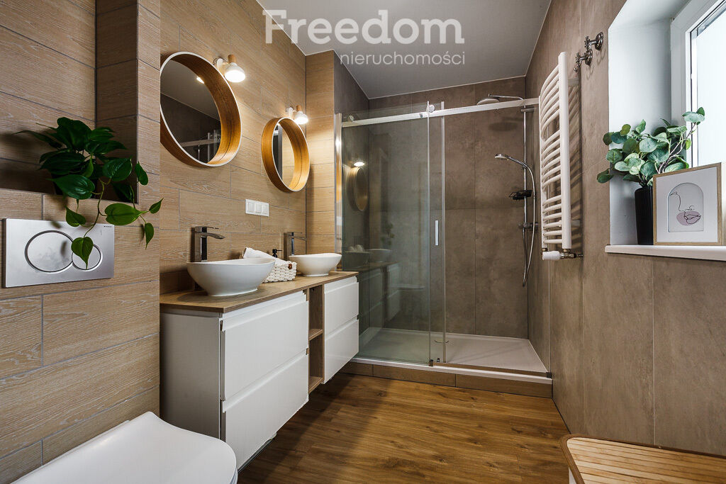 Dom posiada dwie łazienki z kabinami prysznicowymi i brodzikami a